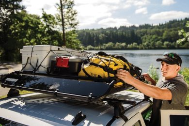 Keeps gear snug and contained on rough terrain.