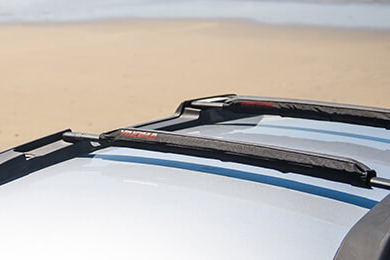 Sectioned hook and loop attachments fit easily around roof rack towers and accessories.